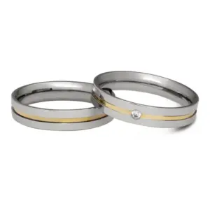 Aliança de Aço Inox | Reta | Frisos | Filetes de Ouro | 8 mm | Berlim | Par
