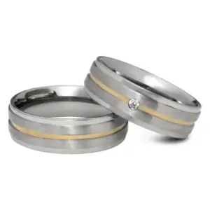 Aliança de Aço Inox | Reta | Fosca | Friso | Filete de Ouro | 8 mm | Par