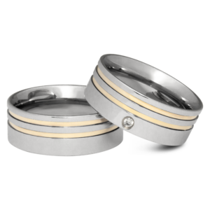 Aliança de Aço Inox | Reta | 2 Frisos | 2 Filetes de Ouro | 7 mm | Par