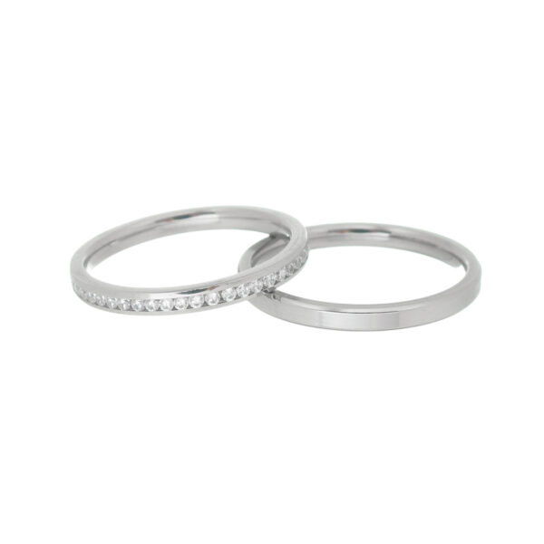 Acabamento externo: Reta, polida, trilho de pedras de zircônias cravadas no centro.