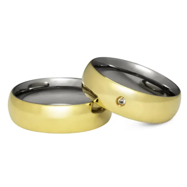 Descrição: Aliança tradicional de casamento ou noivado, produzida liga de moeda antiga com pedra de zircônia cravada. Na parte interna acabamento em aço inox, anatômico, hipoalergênico.